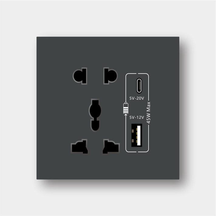 45W国际五孔带USB Type-C插座