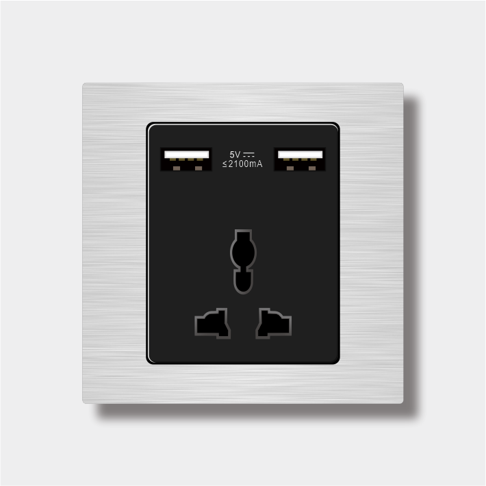 国际双USB三孔插座