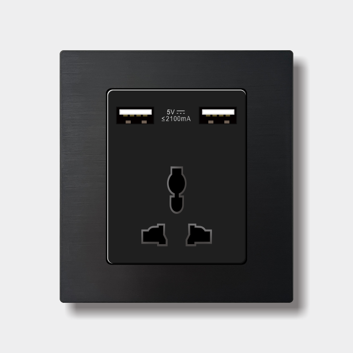 国际双USB三孔插座