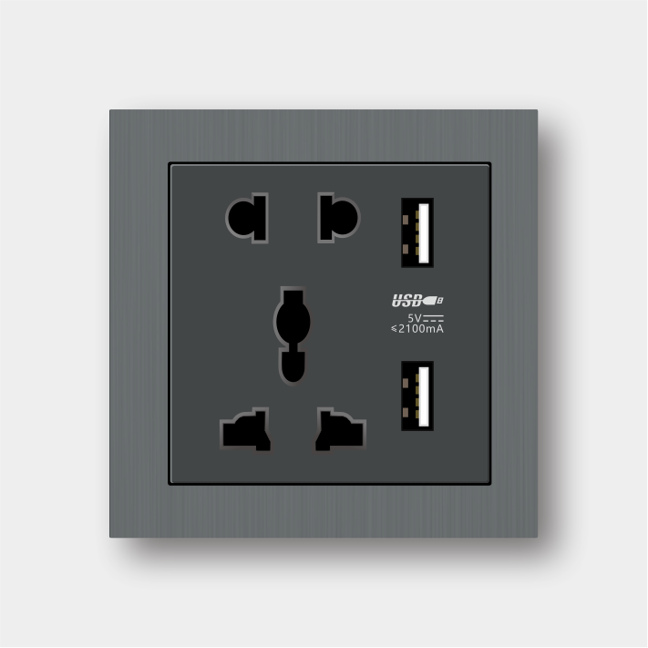 国际五孔带双USB插座