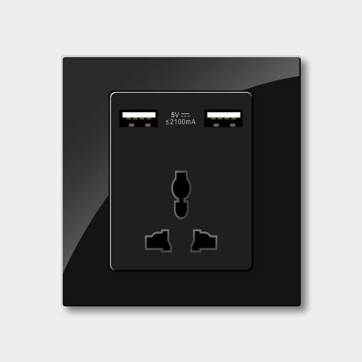 国际双USB三孔插座